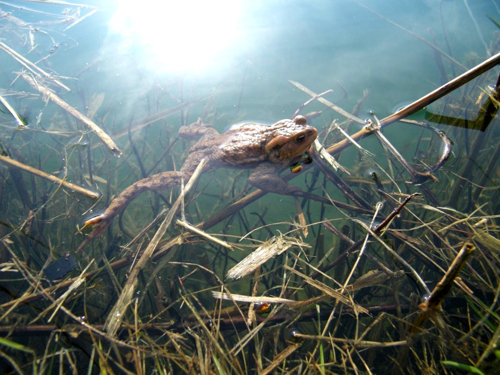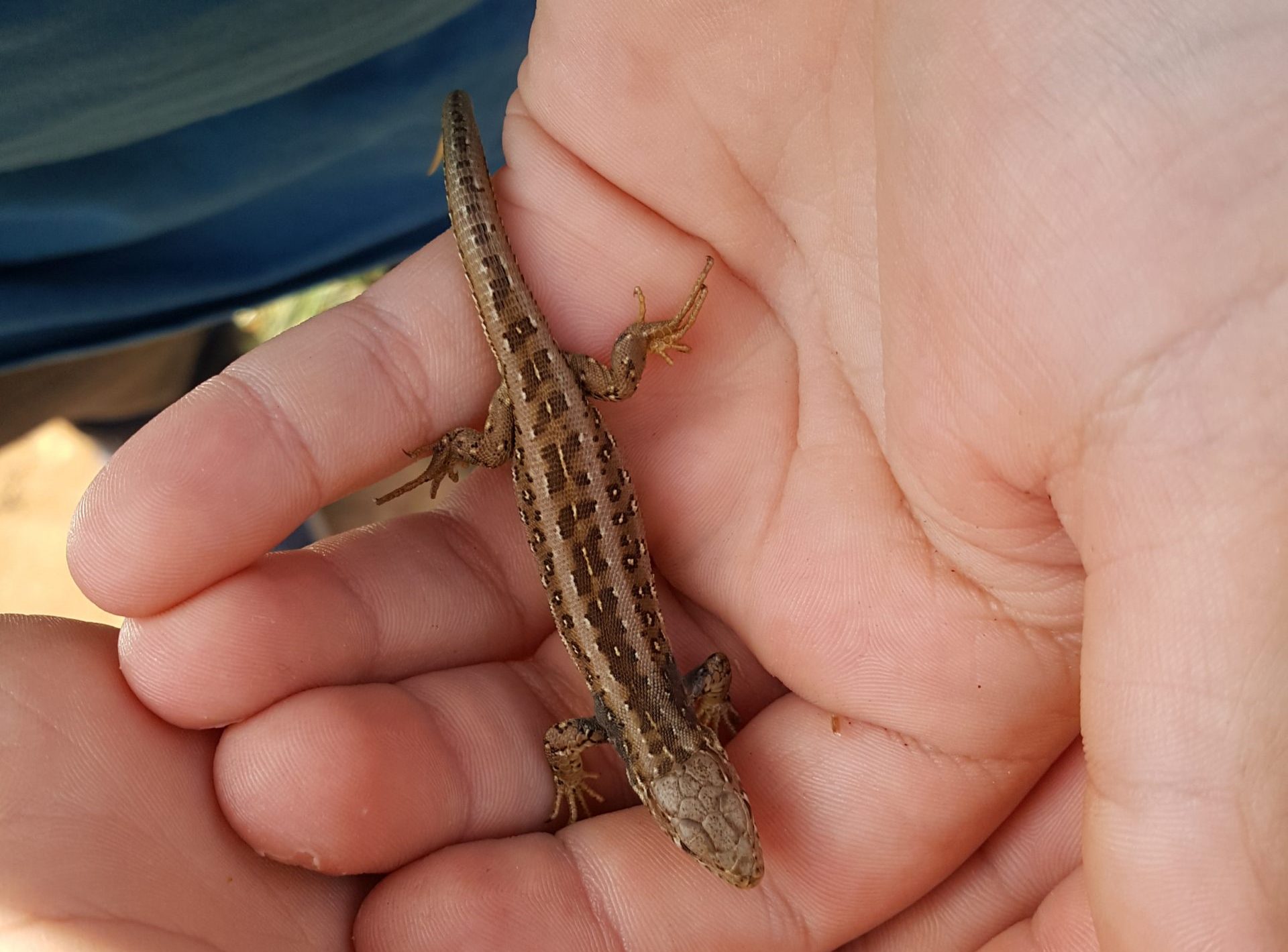 Schon im zeitigen Frühjahr hört man Kröten und wenig später tauchen auch Teichmolche und Frösche in unseren künstlich angelegten Biotopen auf. Und wer beim Spaziergang durch das Gelände sorgsam auf den Boden, vor allem an der sonnigen Hangseite, schaut, kann Zauneidechsen und auch mal eine Ringelnatter erblicken. Bienen und andere Fluginsekten versammeln sich an Kugeldisteln. Am Hang entlang sind viele Brutröhren von Wildbienen im leicht sandigen Boden zu sehen. Glühwürmchen im Sommer runden das Bild ab.