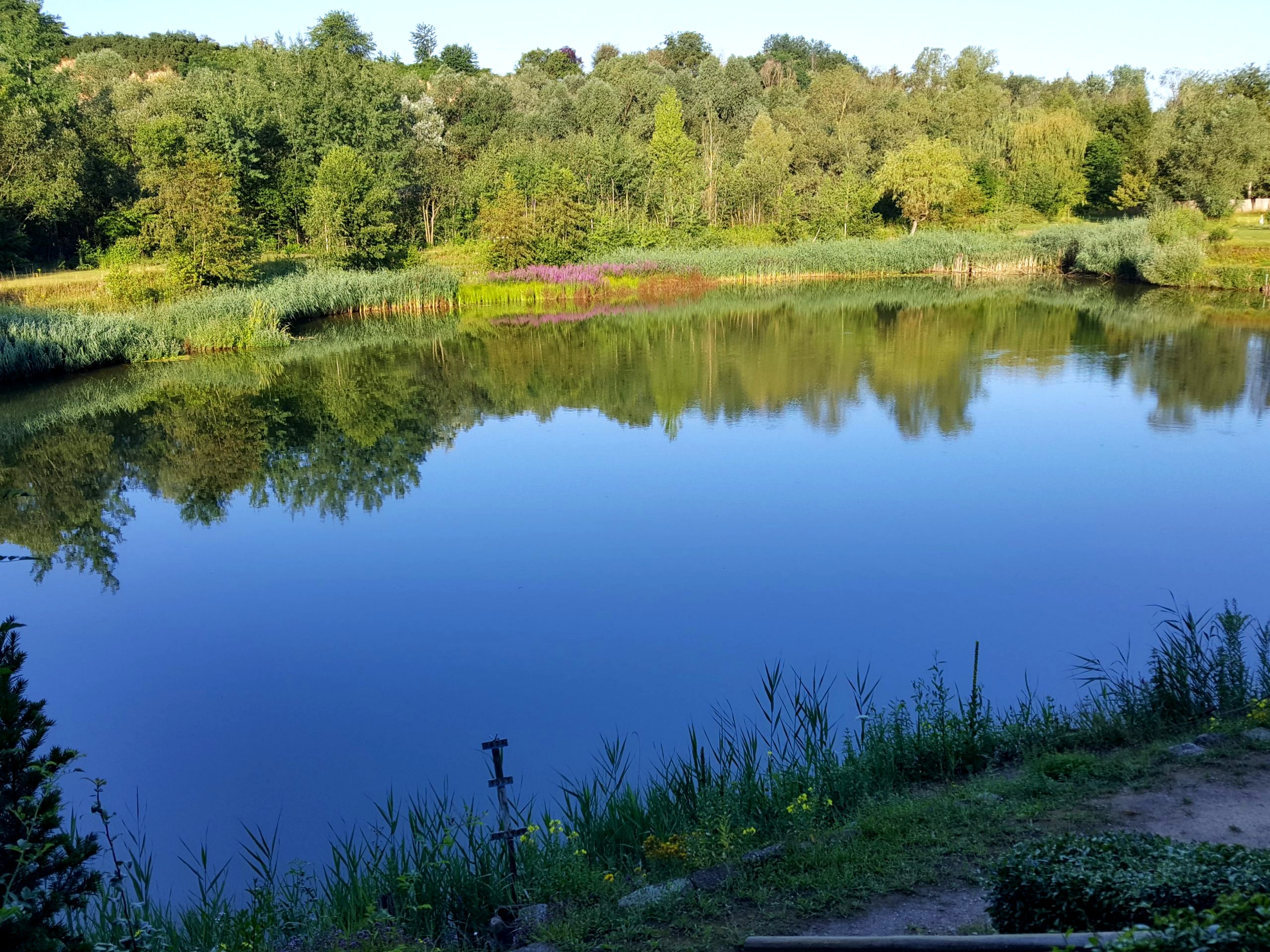 Über die Jahre wurden Tausende von Arbeitsstunden geleistet, um aus der einstigen Kraterlandschaft der Kiesgrube ein grünes Idyll zu machen. Sicher hat auch die Natur kräftig mitgeholfen, aber es ist Fakt, dass nur durch bedachte Pflegemaßnahmen die Artenvielfalt unter und über Wasser erhalten werden kann. Ohne regelmäßigen Rückschnitt der Bäume würden nur noch Weiden stehen und andere Gehölze hätten keine Chance. So findet man auf dem Gelände neben vielen Weidenarten Ahorn, Birke, Eiche, Erle, Haselnuss, Kiefer, Linde, Robinie, Walnuss, Wildkirsche und auch einen Apfelbaum. Besonders im Herbst sind diese Unterschiede gut erkennbar.